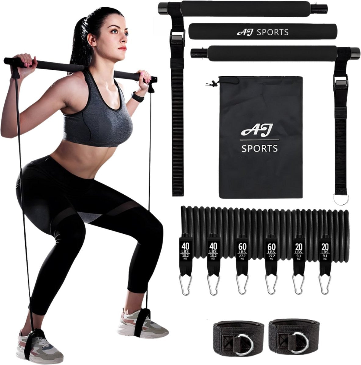 AJ-Sports Weerstandsbanden Set Pro - Pilates Bar - Weerstandsbanden - Fitness Bar - Tot 100 KG Verstelbaar - Pilates Stick - Inclusief 6 Weerstandsbanden - Resistance Band Set - Crossfit - Zwart
